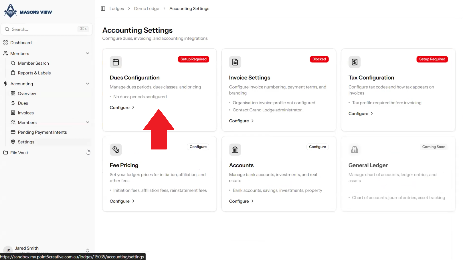 Once the DUES CONFIGURATION loads there's a number of options available.