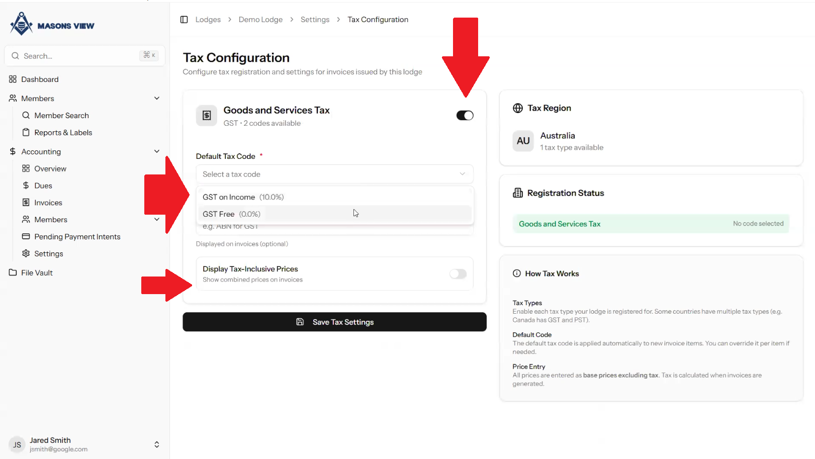 2. Setting GST as a Lodge Treasurer