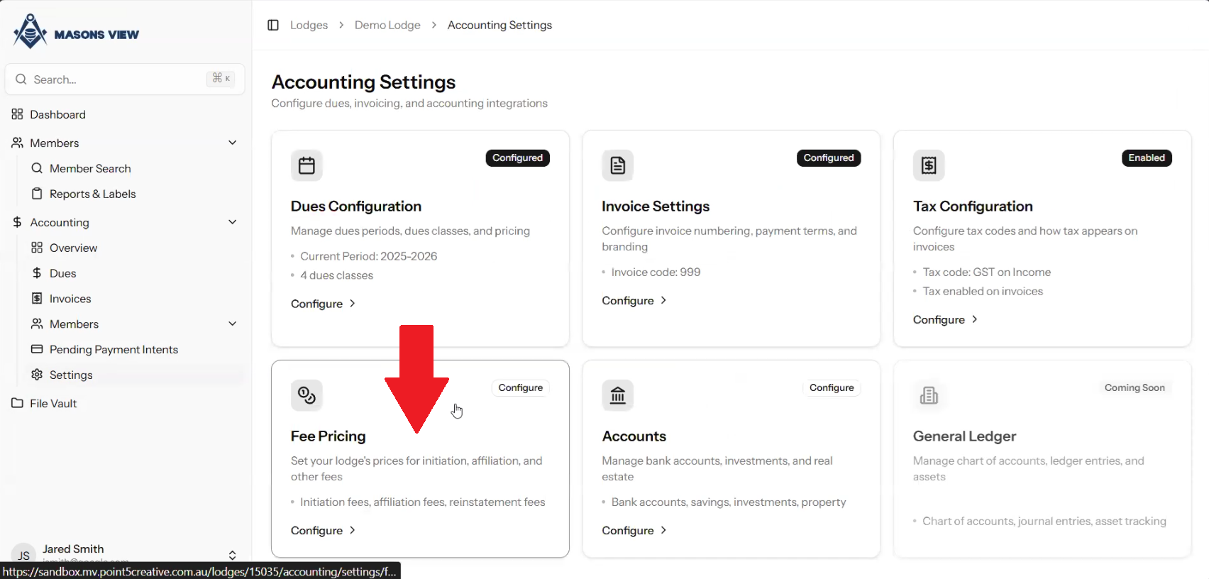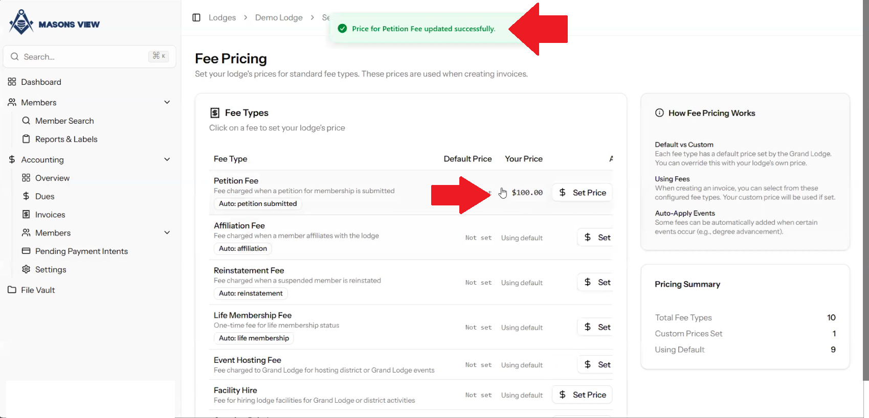 4. Setting up Default Fees as a Lodge Treasurer