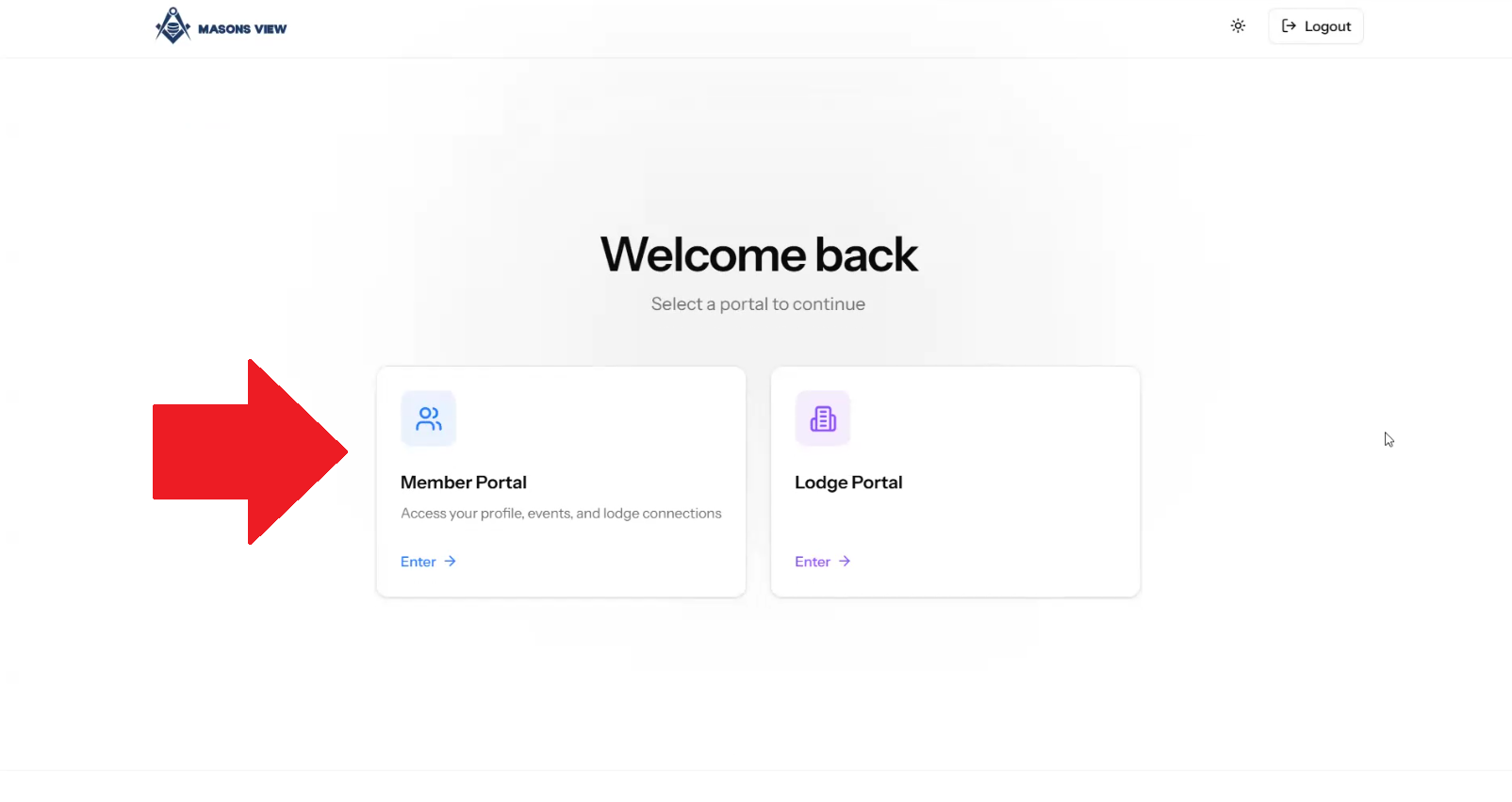 If you have multiple roles (eg treasurer, secretary) you will be given the opportunity to load Lodge portal. In this instance, select MEMBER PORTAL. If you are solely a member, you will be loaded directly into the MEMBER PORTAL.